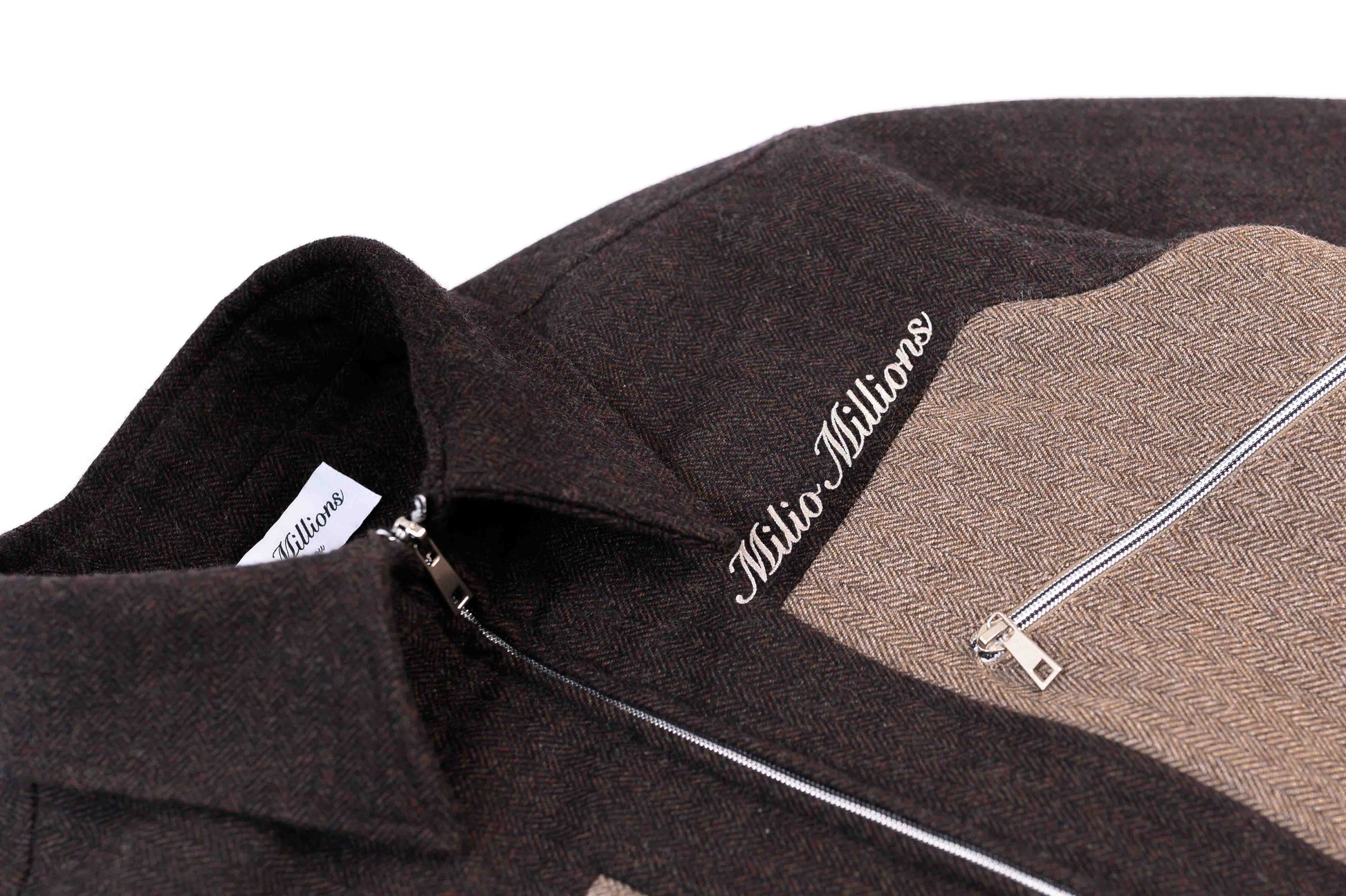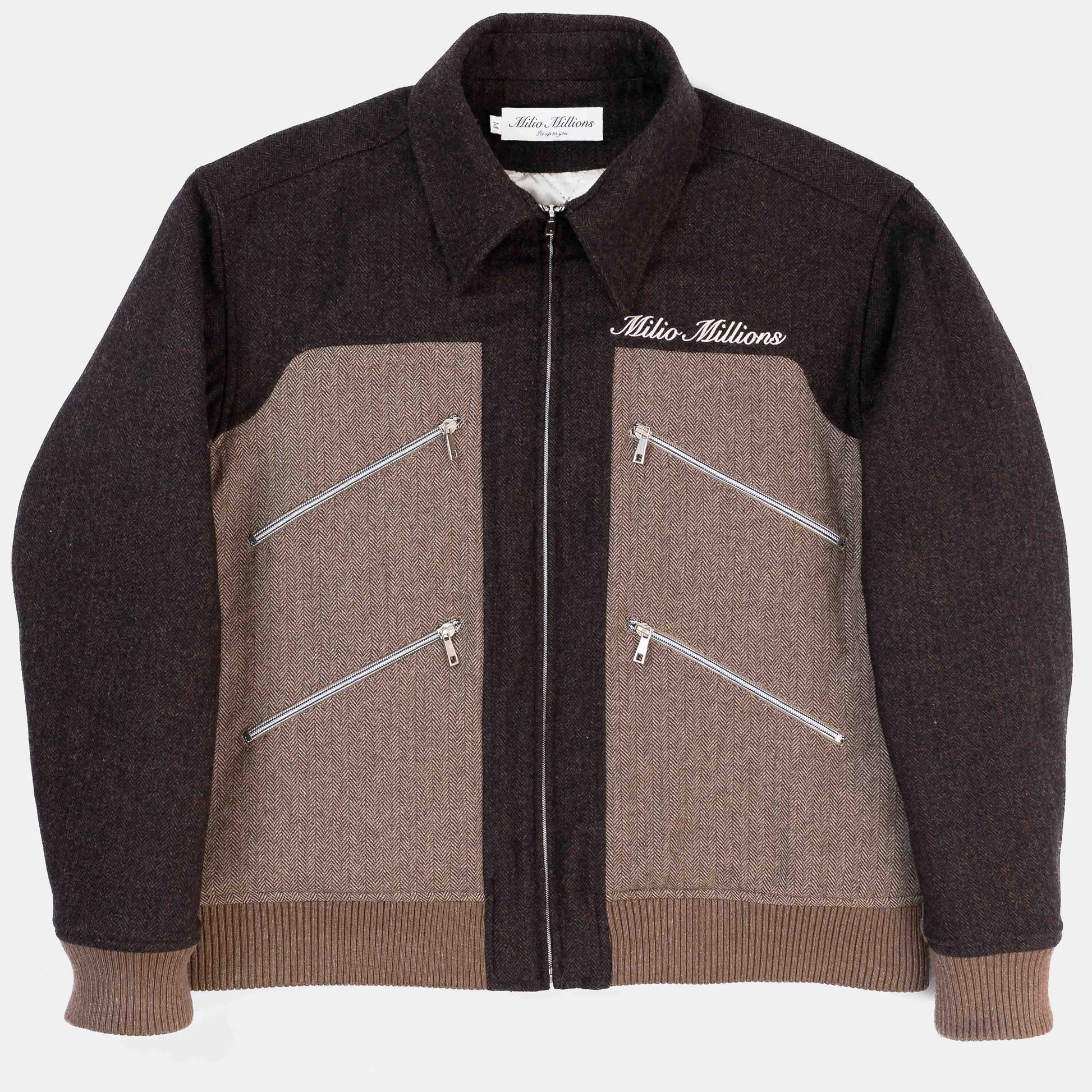 Milio Millions Secret Embroidered Jacket: This mid season jacket is the perfect blend of streetwear and chic. A special insert has been added between the collar and the jacket, allowing the collar to sit slightly higher on the neck and always fall perfectly. Crafted with high quality embroidery, it features a hidden detail within the collar. The zippers on the jacket are specially designed for smoother opening and closing.